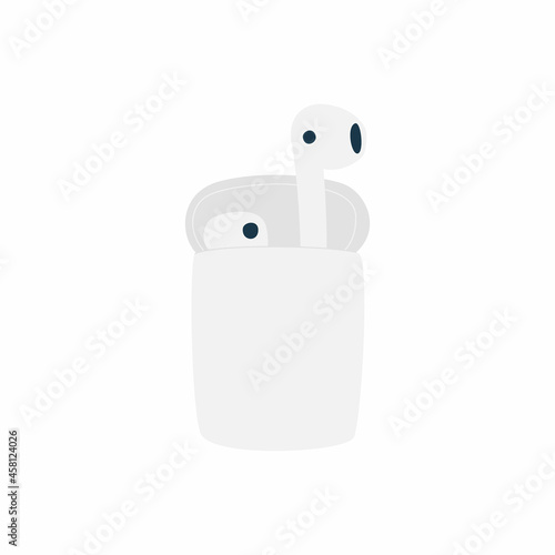 Wireless headphones. hard case for earphone.A gadget for listening to voice information coming from a phone, mp3 player, laptop. Isolated background.