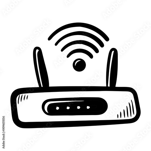 Wireless router with signal waves in a hand-drawn style, Wi-Fi