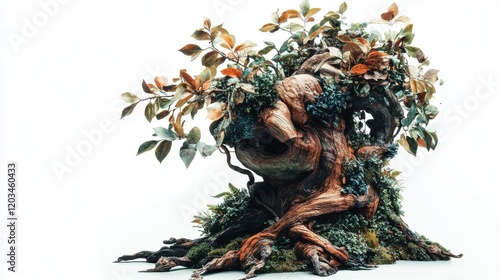 art, installation, tree, gnarled, aged, delicate, intricate, nature, resilience, fragility, cyclical, life, branch, root, leaf, moss, texture, detail, abstract, sculpture, evironment, surreal, environment, growth, decay, time, passage, whimsical, dreamlike