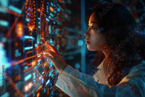 technology, woman, computer, person, female, engineer, business, businesswoman, communication, information, equipment, technician, futuristic, cyber, working, system, digital, network, hardware, datum, adult, research, screen, caucasian, gui, concept, cyberspace, cable, global, online, young, office, innovation, occupation, science, hologram, electronic, expertise, control, future, horizontal, professional, service, indoor, room, support