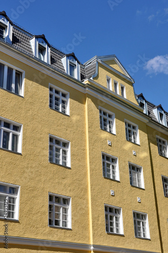old building, apartment building, dwelling, house-building, aspect, painting, architecture, construction, architectural style, skylight, veneer, window, apartment building, monotonous, living space, tenement, drab, house