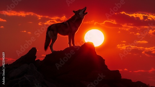 wolf, howling, sunset, rocky, peak, wildlife, nature, freedom, conservation, design, animal, wild, evening, sky, orange, cloud, majestic, wilderness, natural, environment, predator, survival, landscape, dusk, powerful, inspiring, spirit, solitude, emblematic, awe, beauty, scenic, remote