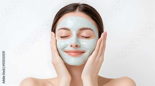 woman, female, skincare, beauty, wellness, spa, face mask, smooth skin, natural beauty, relaxation, calm, serene, closeup, portrait, beauty treatment, moisturiser, beauty product, professional, studio shot, white background, missy, 30s, 40s, cosmetic, treatment, asian, caucasian, lifestyle
