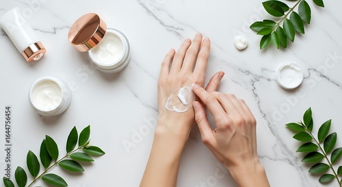 cream, hand, skincare, woman, beauty, care, cosmetic, product, marble, background, moisturiser, lotion, applying, person, female, wellness, healthy, treatment, spa, leaf, plant, natural, dermatology, hygiene, routine, body, nourishment, relaxation, well-being, rejuvenation, cosmetic, health care, hydratation, skin, studio, shot, top, view, clean, white, health, cosmetic product, green