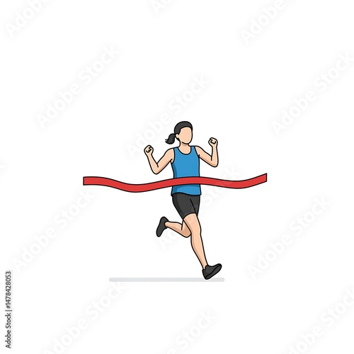 woman, athlete, marathon, running, finish line, winning, runner, sport, competition, exercise, fitness, health, achievement, success, celebration, red ribbon, race, jogging, training, healthy lifestyle, victory, goal, challenge, determination, motivation, strength, endurance, speed, energy, power, effort, progress, activity, wellness, active, lifestyle, physical activity, cartoon, illustration, graphic, design, isolated, clip art, drawing, vector, person, female, champion
