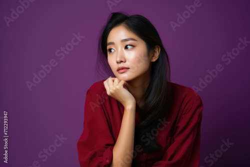 young, asian, woman, person, background, attractive, isolated, female, beauty, pretty, portrait, adult, face, cute, lady, chinese, natural, studio, happy, smile, casual attire, 1, brunette, model, hair, fashion, expression, standing, thoughtful, thinks, looking, cheerful, white, lifestyle, closeup, pensive, happiness, emotion, japanese, fresh, asia, idea, space, copy, pondering, contemplating, business, confident, up, problem