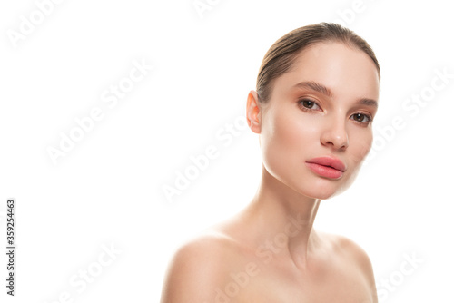 face, health, naked, clear, clean, beautiful, adult, white, care, background, young, fresh, girl, honed, portrait, model, female, beauty, woman, skincare, skin, spa, head shot, healthy, constructed, pure, posing, sexy, youth, smiling, head, soft, pampering, view, make-up, eye, facial, make well, closeup, cleansing, cosmetic, ageing, natural, up, isolated, front, close, studio, brown, brunette
