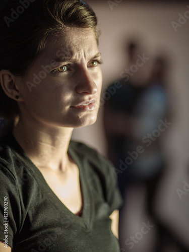 female, woman, closeup, preoccupied, pensive, thoughtful, couple, blurred, image, beautiful, beauty, cute, pretty, youth, young, cuteness, innocence, person, reflections, appearance, portrait, girl