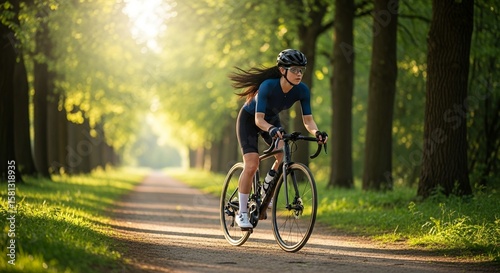 bicyclist, cycling, bicycle, bike, road bike, athlete, sport, fitness, healthy lifestyle, outdoor sport, nature, park, tree, sunlight, sunrise, morning, summer, spring, landscape, active, sport, exercise, recreation, hobby, healthy, wellness, well-being, energy, freedom, adventure, travel, journey, way of life, lifestyle, scenic, beautiful, vibrant, dynamic, motion, speed, competition, race, endurance
