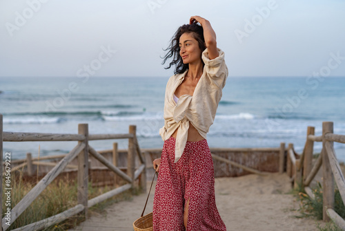 beach, breezy, woman, enjoying, ocean, sea, nature, outdoors, summer, vacation, relaxation, freedom, leisure, carefree, joyful, happy, smiling, scenic, landscape, beauty, wind, wave, coastal, casual attire, lifestyle, fashion, stylish, travel, journey, adventure, peaceful, tranquil, harmony, escape, fresh air, sand, shoreline, bliss, serenity, well-being, inspiration, holiday, natural, environment, relaxing, fun, mindfulness, calm