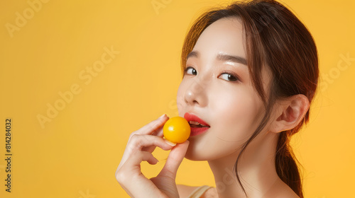missy, cherry tomato, pleasure, radiant, juicy, enjoyment, health, freshness, beauty, eating, vibrant, yellow background, snack, healthy, delicacy, culinary, taste, attractive, wellness, nourishment, lifestyle, vegetarian, bite, smiling, closeup, eye, lip, dietary, favor, fresh food, agriculture, organic, simplicity, diet, epicure, head shot, sharpened, temptation, cheerful, satisfaction