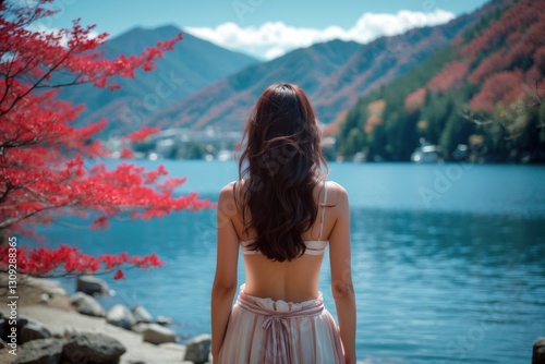 lake, woman, autumn, mountain, scenery, nature, beauty, outdoors, peaceful, calmness, landscape, tour tourism, relaxation, scenic, colours, foliage, horizon, sunshine, water, adventure, wanderlust, travel, retreat, hiking, exploration, serenity, calm, environment, day, leisure, summer, view, back, hair, fashion, style, enjoyment, inspiration, picturesque, clear, sky, remote, escape, journey, balance, wellness, meditative, seasonal