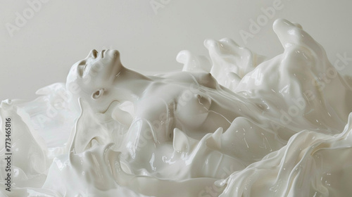 Woman Enveloped in Milk, Purity and Serenity Concept. Ethereal Beauty