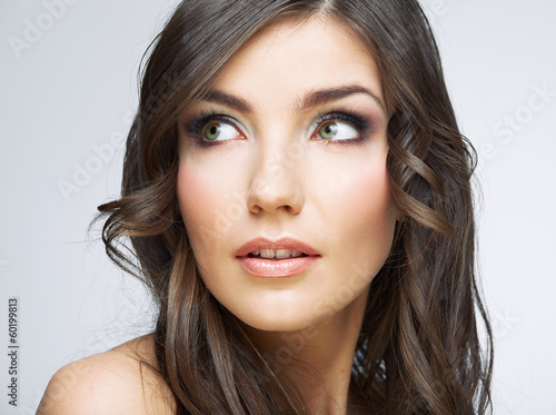 woman, face, beauty, close, up, model, isolated, constructed, side, natural, white, background, brown, adult, head, studio, glamour, light, clean, people, 1, caucasian, female, fashion, portrait, cute, modern, lady, lip, healthy, young, girl, care, colours, person, long, hair, skin, looking, style, beautiful, fresh, health, pretty, hand