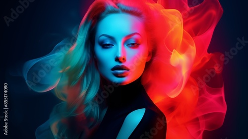 glamour, face, woman, girl, poster, background, banner, fashion, woman, beautiful, art, artwork, layout, horizontal, advertising, fire, concept, creative, geometric, flames, burn, graphic, design, illustration, photo, head, human, people, hair, beauty, red, nice, wallpaper, bright, high-coloured, neon, wave, wave, futuristic, style, photo, realistic, render, ai