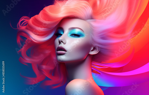 girl, woman, poster, background, face, glamour, banner, fashion, woman, beautiful, art, artwork, layout, horizontal, advertising, abstract, concept, creative, geometric, acid, graphic, design, illustration, photo, head, human, people, hair, beauty, surreal, nice, wallpaper, bright, high-coloured, neon, wave, wave, futuristic, style, photo, realistic, render, ai, purple
