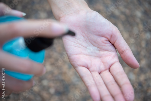 Woman Hand Pump Alcohol Gel in order to Kill Germs, covid19