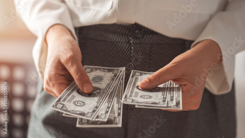Woman hands holding and counting dollars