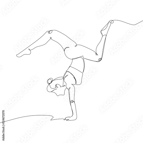 Woman handstand one line art. Continuous line drawing sports, fitness, physical education, athletics, asanas, yoga, strength, athletic body, athlete, girl, gym, stretching, sexy body.