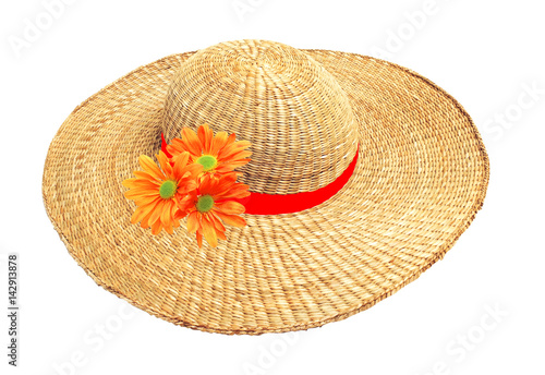accessory, background, beach, beautiful, big, clothing, decorated, fashion, flower, glamour, green, hat, headdress, heat, holiday, hot, isolated, lady, nobody, object, 1, personal, pink, protection, ribbon, single, striped, studio, summer, sun, vacation, white, woman, yellow