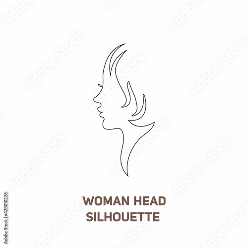 Woman head line silhouette, hand drawing female head. Minimalist woman face symbol icon side view. Lady face shape. Hand drawing outline