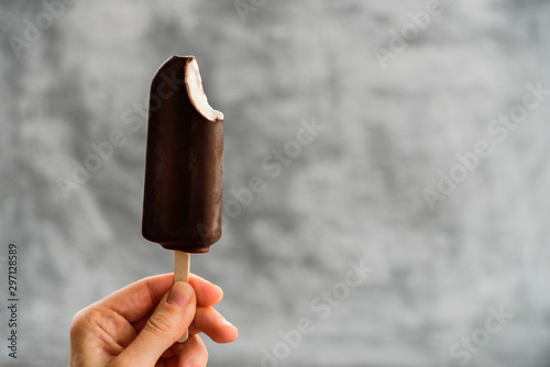 ice, cream, eskimo, pie, dessert, food, sweet, chocolate, background, brown, stick, snack, delicious, white, cold, summer, glacé, vanilla, closeup, milk, refreshment, ice cream, dairy, eat, refreshing, popsicle, bar, ice cream, gelato, product, glaze, treat, icing, cream, natural, space, day, hand, holding, wooden