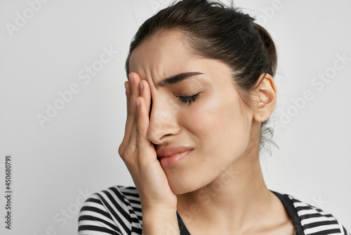 people, health, female, young, head, portrait, stress, sick, pain, depression, ill, cephalalgia, stressed, migraine, white, beautiful, person, woman, face, adult, disease, problem, sleepy, worry, depressed, suffer, modern, lady, sad, emotional, sorrowful, trouble, ache, business, lifestyle, pretty, model, expression, eye, hand, temple, bad, negative, serious, despair, background, beauty, up