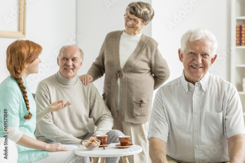 woman, husband, shoulder, hand, nurse, assistant, patient, man, carer, elder, home, retirement, together, professional, care, friends, room, smile, indoor, meeting, wall, nursing home, senior, table, happy, grandfather, caregiver, grandmother, white, grandmother, geriatric, old, help, doctor, retire, grandparent