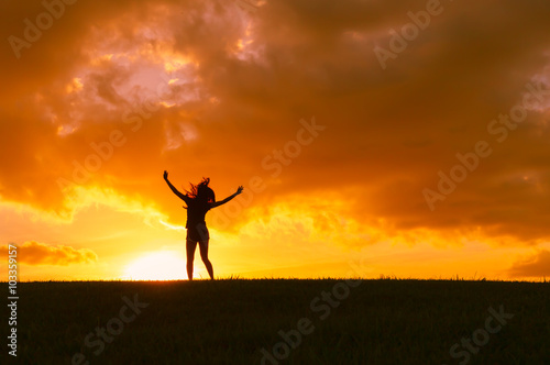 Woman in a beautiful sunset feeling free.