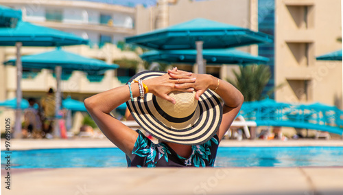 woman, hat, vacation, relax, water, pool, sunglasses, fun, summer, adult, swimwear, swimwear, black, travel, lifestyle, outdoors, female, relaxation, swimming, holding, holiday, happy, beautiful, enjoy, sunbathe, tropical, beauty, girl, tour tourism, copy space, banner, caucasian, hot, fashion, people, portrait, straw, swimming pool, poolside, home, enjoyment, friendship, swim, sunbath, smile, slim, skin, shape, sexy