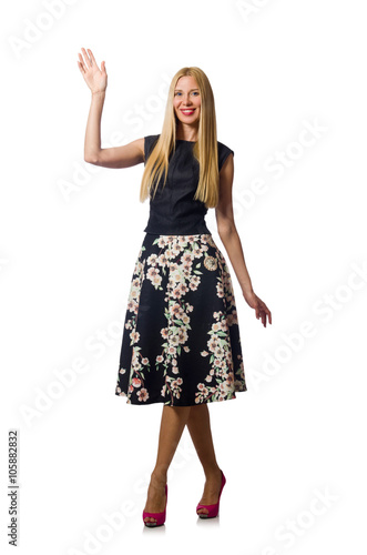 attractive, beautiful, beauty, black, blond, blondie, blue, bye, caucasian, charming, sewing, dark, dress, elegant, fashion, fashionable, female, floral, flower, girl, glamourous, glamour, glamourous, adieu, gown, hand, happy, hallo, lady, long, model, ornament, pretty, print, romantic, salute, saluting, smiling, waving, white, woman, young