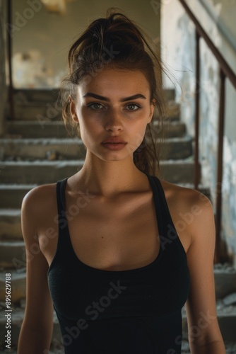 woman, tank top, black, pose, model, fashion, clothing, female, apparel, dressy, casual attire, lifestyle, portrait, studio, photo