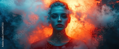 woman, smoke, portrait, colourful, light, fashion, art, photo, model, girl, red, blue, beauty, stylish, photo, glamour, make-up, creative, artistic, studio, lighting, dramatic, pretty, beautiful, trendy, hot, cool, atmosphere, colours, smokey, attractive, visual, passionate