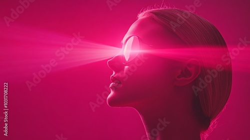 woman, sunglasses, pink, light, ray, glow, bright, fashion, style, beauty, portrait, model, female, face, eye, hair, trendy, glamourous, cool, studio, background, minimal, modern, concept, abstract, art, graphic, design, vision, future