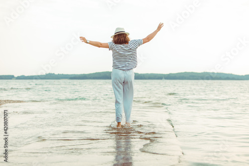 woman, walking, sea, water, bay, dock, outdoors, nature, view, cloud, luxury, fedora, fashion, hat, lifestyle, travel, tour tourism, adventure, journey, freedom, carefree, joyful, free, seacoast, shore, coastline, caucasian, young person, adult, white, pretty, summer, season, vacation, holiday