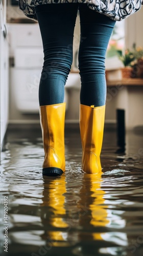 flood, water, boot, yellow, kitchen, floor, home, damage, house, repair, plumbing, leak, insurance, disaster, emergency, safety, protection, footwear, rubber, standing, indoor, puddle, ripple, problem, crisis, accident, homeowner, residence, interior, trousers, clothing, leg, surface, liquid, wet, apartment, renovation, maintenance, risk, danger, caution, prevention, solution, assistance, help, support