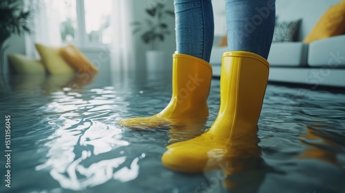flood, water, damage, home, house, indoor, boot, rubber, leg, woman, female, person, foot, floor, room, living, interior, disaster, emergency, problem, insurance, safety, precaution, wet, soaked, liquid, standing, cleaning, repair, restoration, crisis, consequence, accident, property, dwelling, submerged, footwear, apparel, clothing, distress, help, assistance, solution, impact, aftermath, recovery