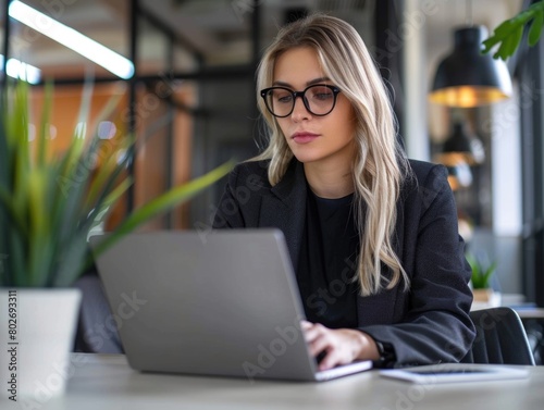 secretary, serious, typing, entrepreneur, wireless, workplace, manager, notebook, using, online, businesswoman, goggles, lady, woman, working, job, laptop, desk, corporate, indoor, professional, connection, cyberspace, office, person, interior, pretty, sitting, looking, eyeglass, communication, computer, female, 1, portrait, business, technology, freelance, white, young, caucasian, modern, cafes, adult, lifestyle, attractive, casual attire, beautiful, table