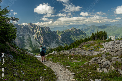 washington, adventure, alpine, backpacker, backpacking, cairn, cloud, fog, fun, happy, hiking, layer, mountain, national park, nature, paradise, park, rock, scenery, season, snow, stacked, summer, summit, trail, wilderness