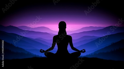 meditation, woman, mountain, sunset, peace, yoga, serenity, nature, calm, calmness, silhouette, landscape, spiritual, mindfulness, relaxation, healthy, wellness, harmony, balance, zen, exercise, fitness, lifestyle, background, image, graphic, design, illustration, vector, scene, view, travel, beautiful, gorgeous, amazing, stunning, picturesque, vibrant, colourful, dark, night, well-being