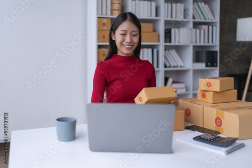 woman, online seller, efficiently manages customer orders and delivery through the e-commerce platform