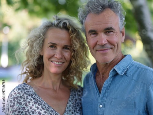 woman portrait mature couple happy together active bonding park outdoor middle aged man talking leisure park fun smiling love old middle mid aged nature wife walking