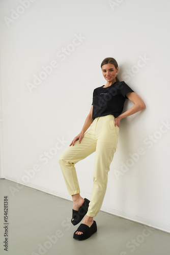 appearance, attractive, beautiful, beauty, bright, casual attire, caucasian, charme, cheerful, clean, clothes, clothing, comfortable, confident, contemporary, daylight, design, elegance, expression, fashion, fashionable, female, foot, girl, grace, indoor, lifestyle, light, look, minimalistic, model, modern, outfit, portrait, pose, posing, posture, serene, shoe, showcase, simple, standing, studio, style, stylish, trendy, urban, wear, woman