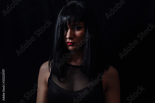 woman posing on black background