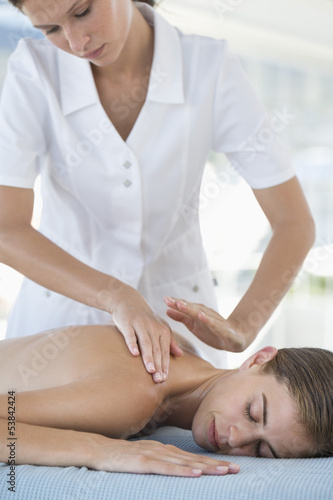 beauty, receiving, woman, adults only, reiki, aromatherapy, assistance, blonde hair, bodycare, caucasian appearance, closeup, color image, day, expertise, eyes closed, femininity, front view, health spa, healthy lifestyle, human hand, indoor, avocation, lifestyle, looking down, luxury, lying down, massage therapist, pampering, relaxation, relief, resting, half face, skill, spa treatment, standing, two people, vertical, photo, well-being, young adult, missy, human skin, spa