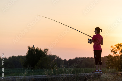 fishing, woman, silhouette, sunset, nature, sport, fisherman, activity, catch, sea, hobby, fish, summer, recreation, tour tourism, landscape, outside, holiday maker, rod, mount, fun, scenery, vacation, view, girl, evening