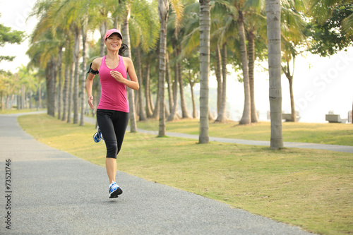 woman runner athlete running at tropical park