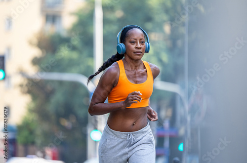 outdoors, urban, city, street, city life, car, traffic, road, runner, jogging, running, marathon, people, joy, woman, black, natural, attractive, happiness, real people, mature, adult, one person, smiling, african american, confidence, beautiful, female, lifestyle, enjoyment, diversity, leisure, positive, carefree, fun, healthy, healthy lifestyle, activewear, active, sport, sporty, fit, training, athletic, body, fitness