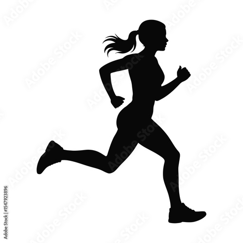 silhouette, woman, running, jogging, fitness, exercise, healthy, lifestyle, sport, athlete, runner, ponytail, athletic, shoe, physical exercise, cardio, training, health, female, figure, body, shape, active, motion, speed, energy, motivation, illustration, graphic, vector, clip art, isolated, black, person, activity, wellness, marathon, race, jog, aerobic, activewear, leg, arm