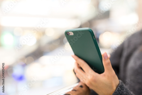 people, mobile, phone, mobile phone, mobile phone, smartphone, phone, hold, smart, text message, text, message, sending, browse, surf, use, touch, type, working, look, reading, watching, play, game, app, woman, girl, female, mall, shopping, interior, store, blur, blurred, market, abstract, shop, retail, light, business, building, city, inside, center, client, depth, shallow, bokeh, department, architecture